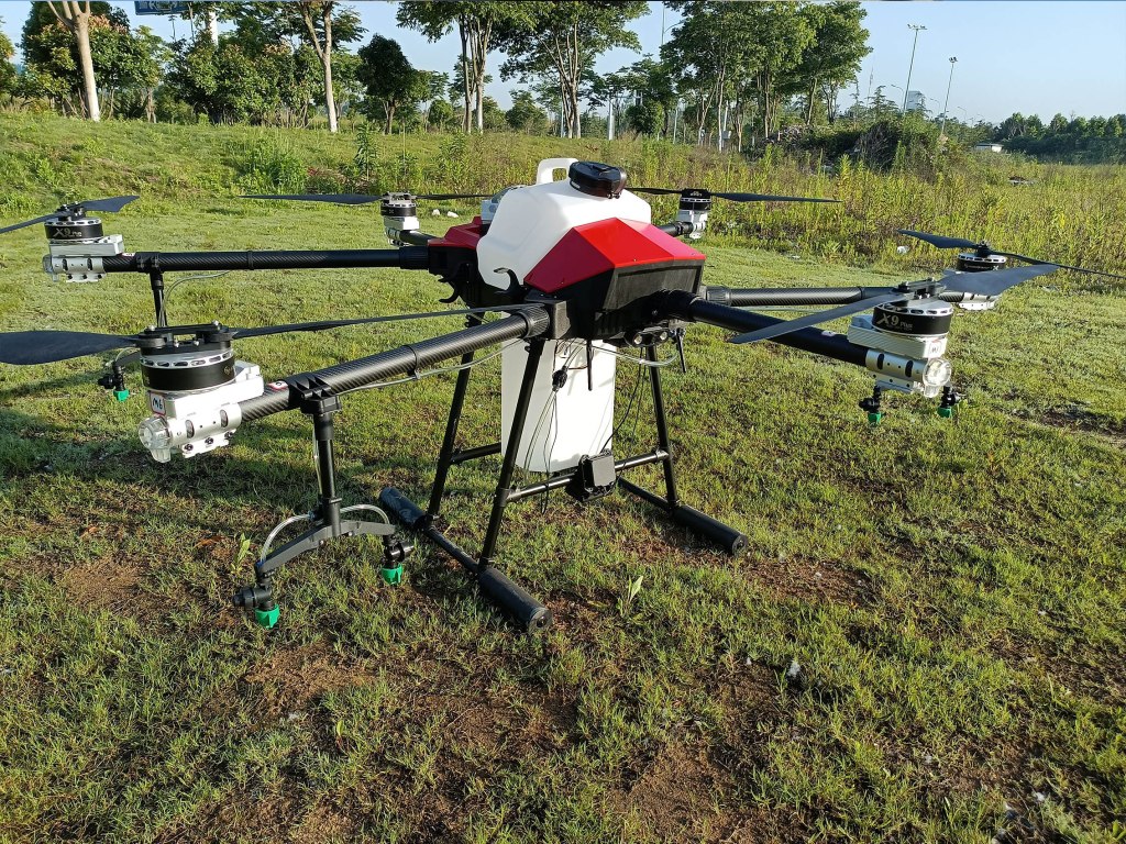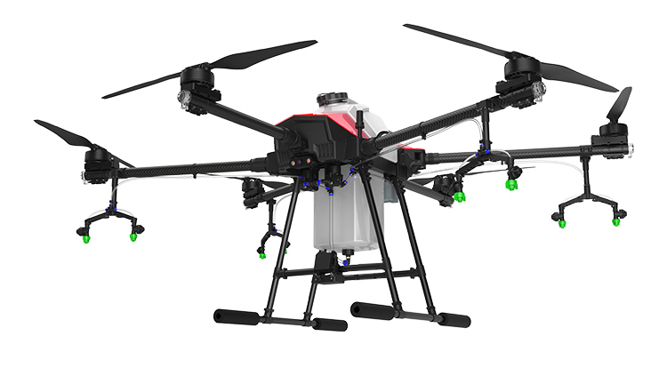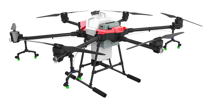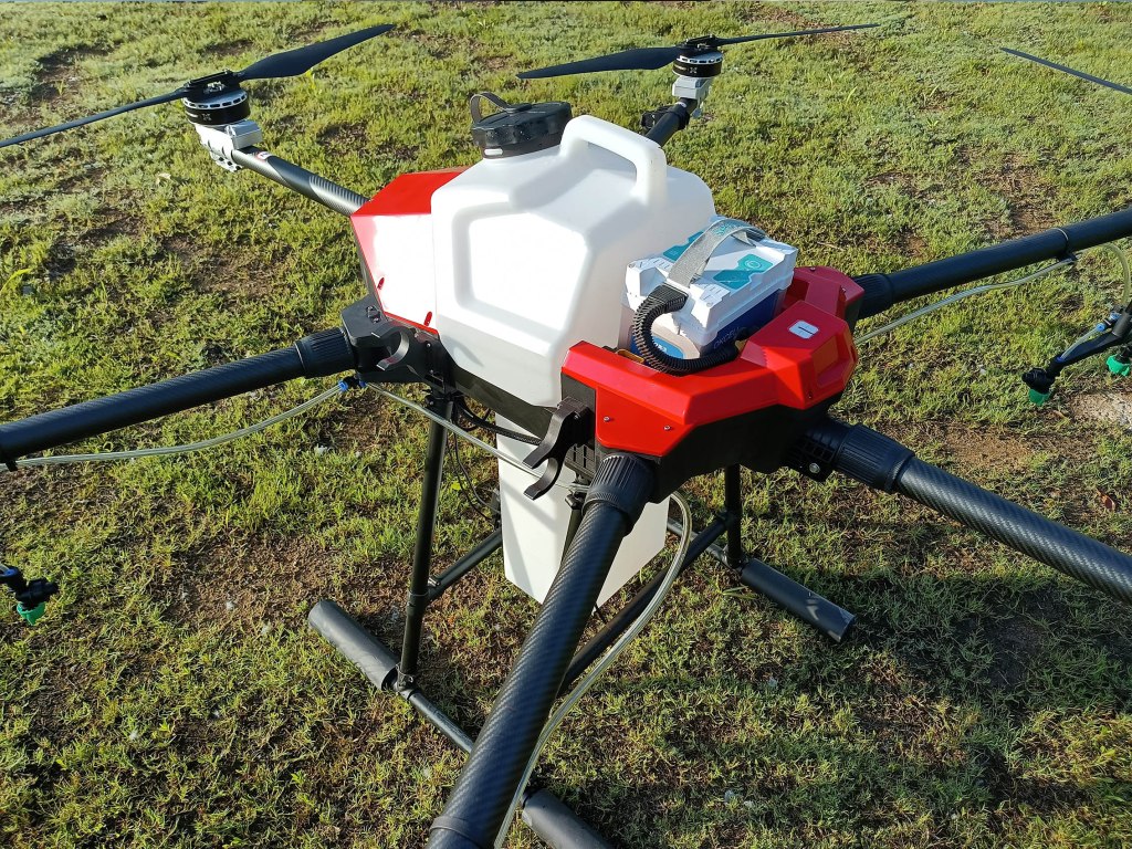 The F630 has a load of 30kg and a 5.5-meter wide spraying width. The efficiency of a single sortie is 2 hectares. It can dispatch 7-8 sorties per hour to complete about 14 hectares of land. At least 6 batteries are required to ensure uninterrupted operation of the drone. More efficient.