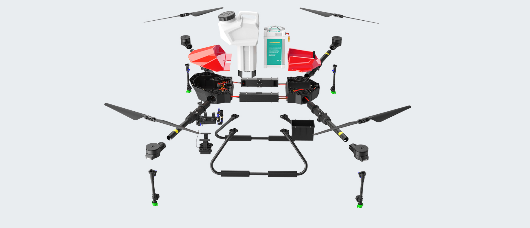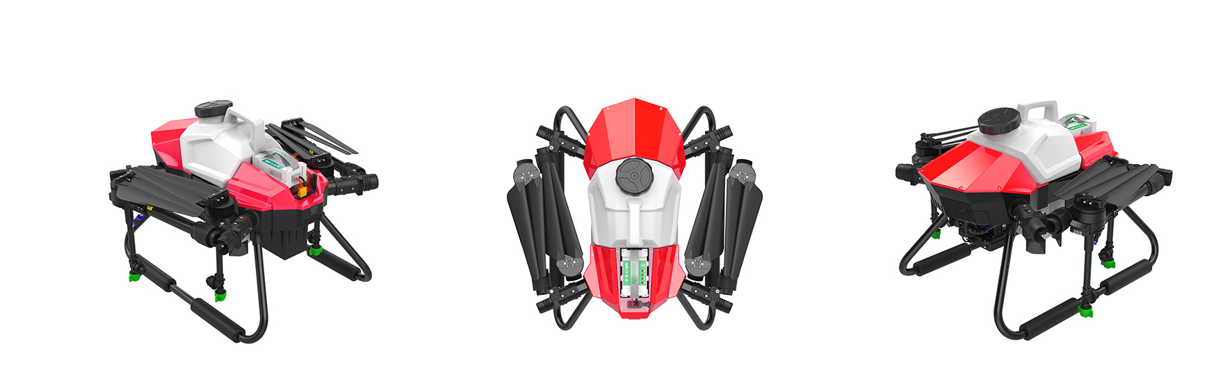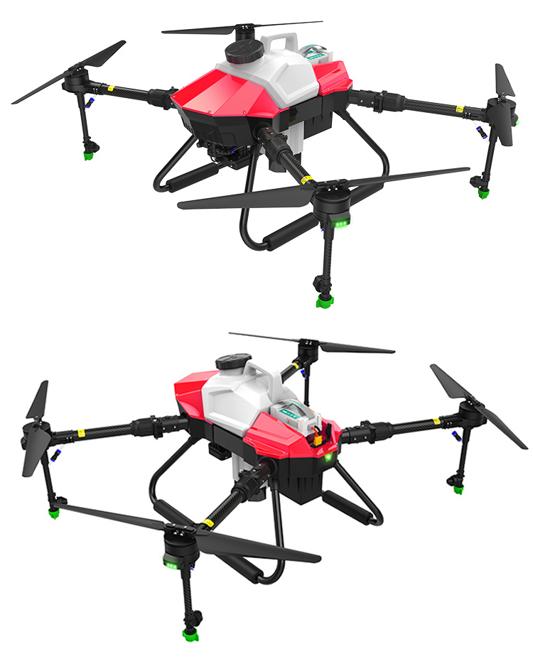 The G06 has a load of 6kg and a 3.5-meter wide spraying width. The efficiency of a single sortie is 0.4 hectares. It can dispatch 8-10 sorties per hour to complete about 3.5 hectares of land. At least 4 batteries are required to ensure uninterrupted operation of the drone. More efficient. Suitable for small plots of work, or used as a novice training machine.