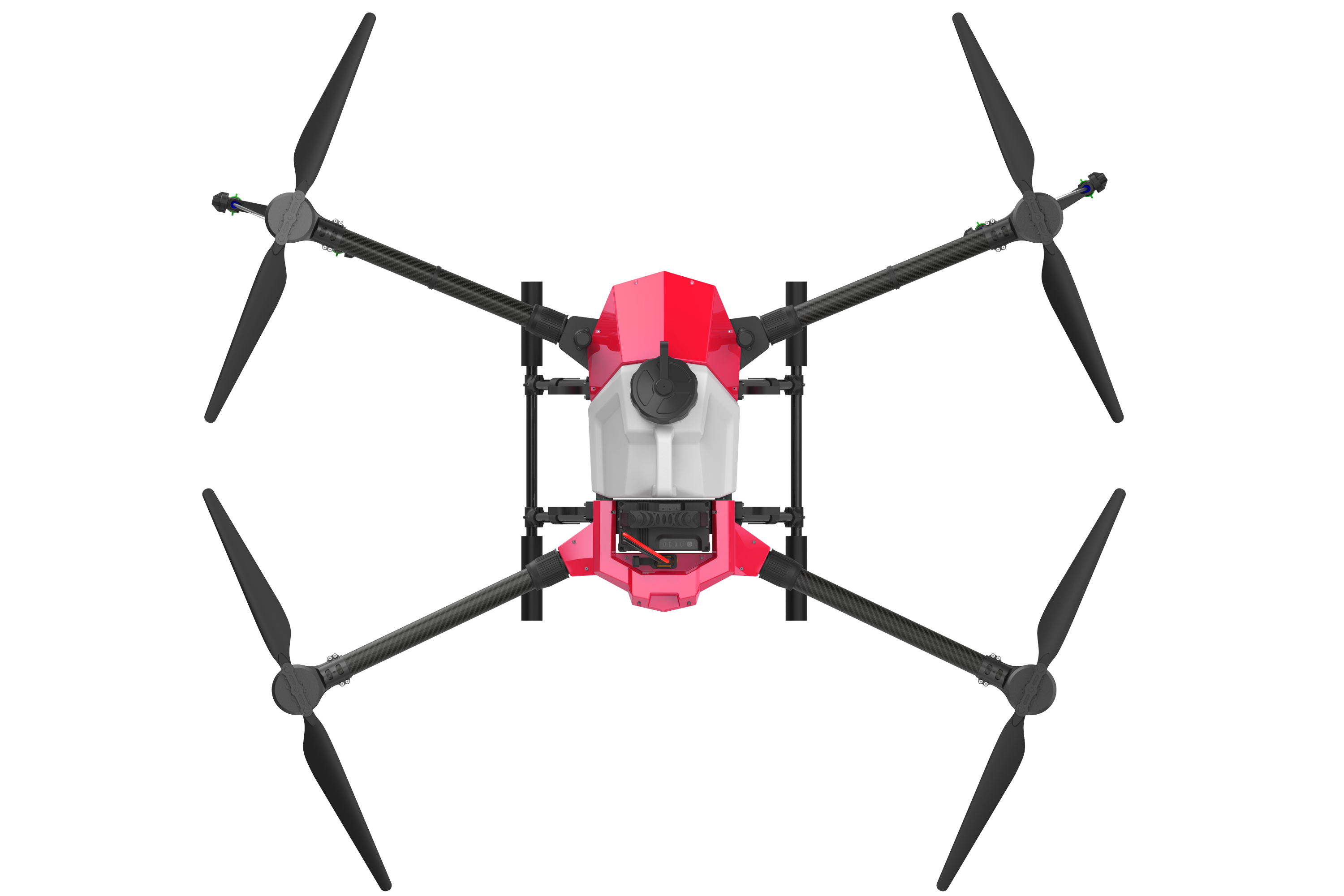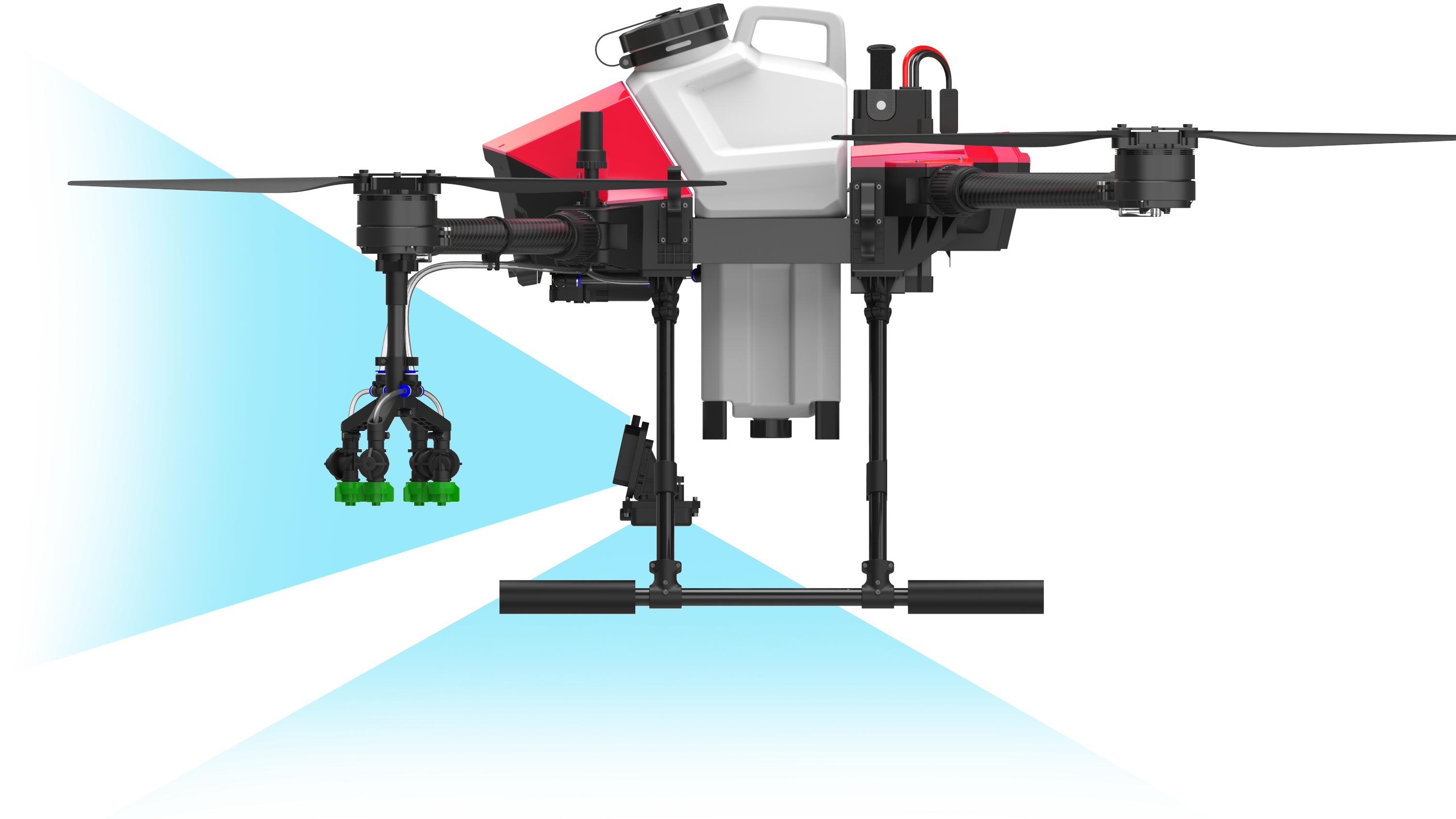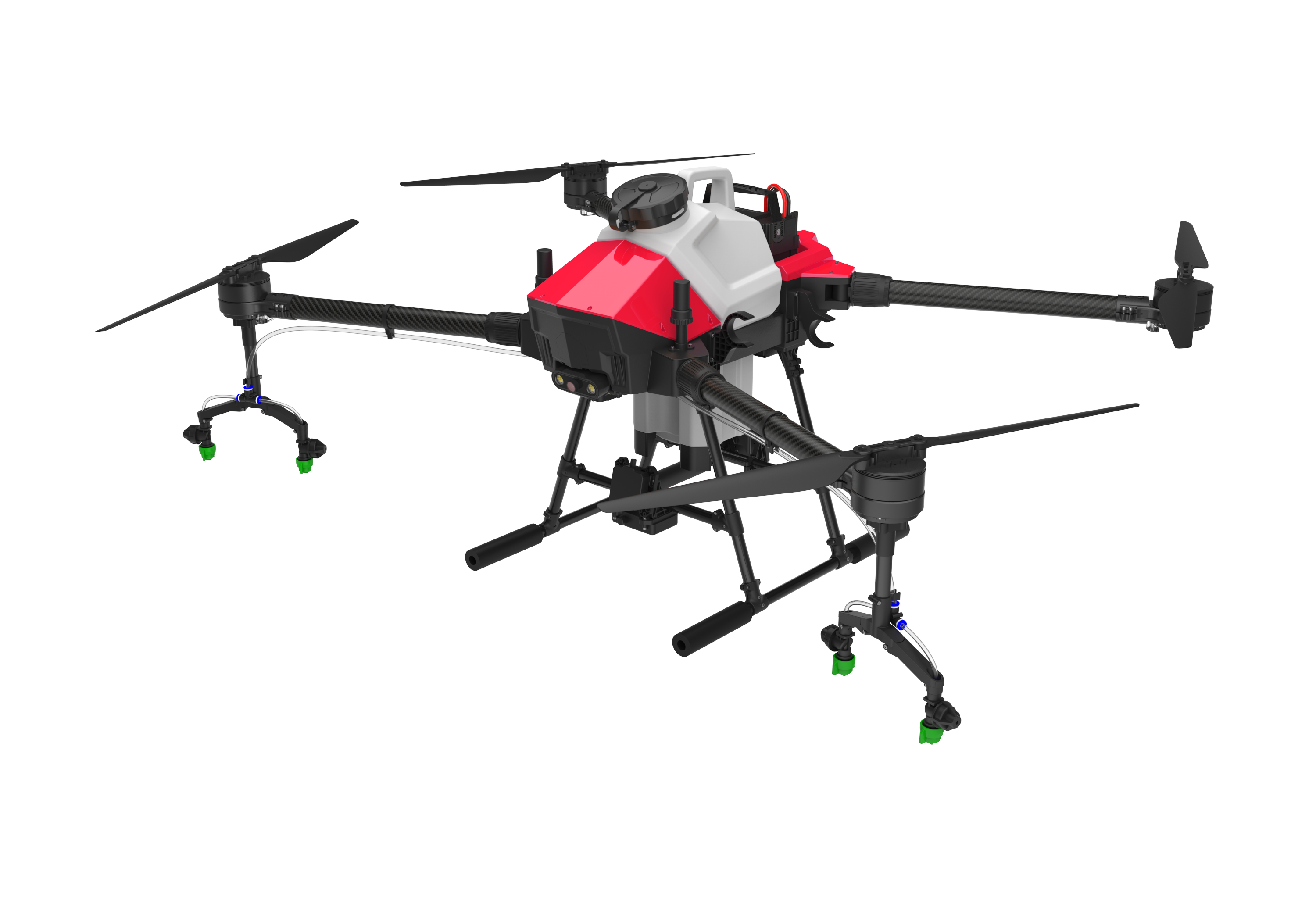 The G410 has a load of 10kg and a 4m wide spraying width. The efficiency of a single sortie is 0.6 hectares. It can dispatch 7-8 sorties per hour to complete about 4.5 hectares of land. At least 4 batteries are required to ensure uninterrupted operation of the drone. More efficient. Suitable for small plots of work, or used as a novice training machine.