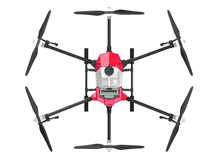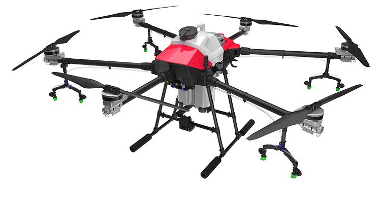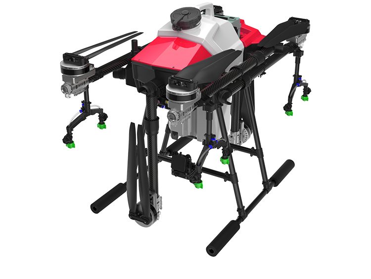 GX620 载重 20kg,配合 5米宽喷幅,单架次作业效率1.3公顷,每小时可出动7-8架次,完成约10公顷土地,至少需要5 块电池以确保不间断运行的无人机,让作业更为高效。