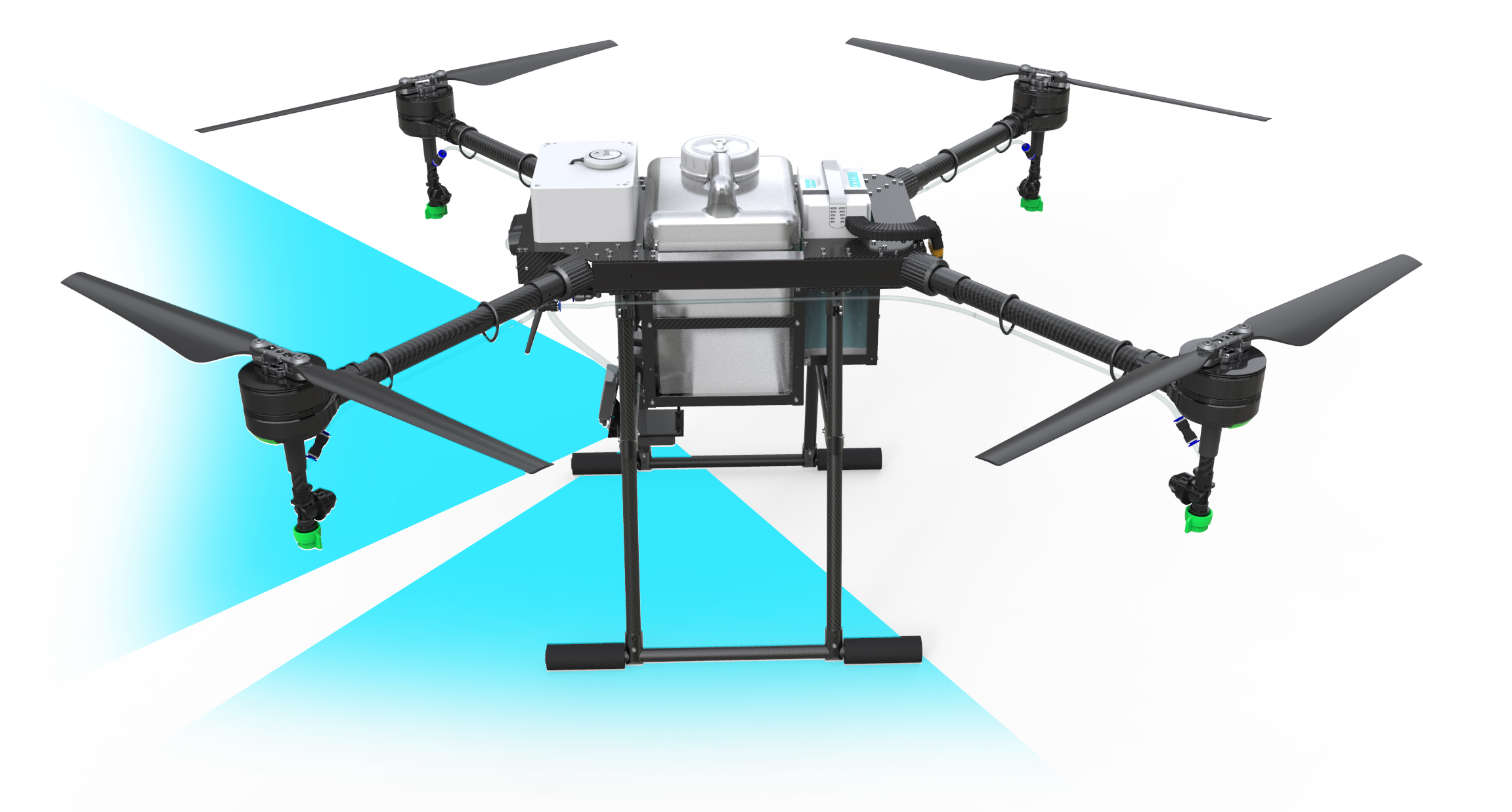 E410 is equipped with obstacle avoidance radar and ground defense radar, which can identify obstacles in front of the flight direction, and has the function of imitating ground flight to fully guarantee the safety of operation. Radar operation is not affected by ambient light and dust, and can perceive the farmland environment all-weather, and flight safety is further improved. E410 is also equipped with a real-time image monitoring system and night searchlights, allowing you to easily monitor the equipment operating environment.